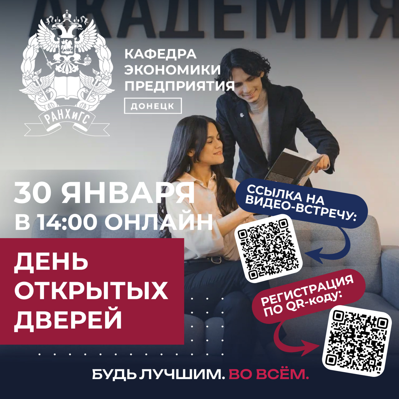 30 января 2026 года в 14:00 кафедра экономики предприятия Донецкого филиала Президентской академии приглашает вас посетить День открытых дверей.