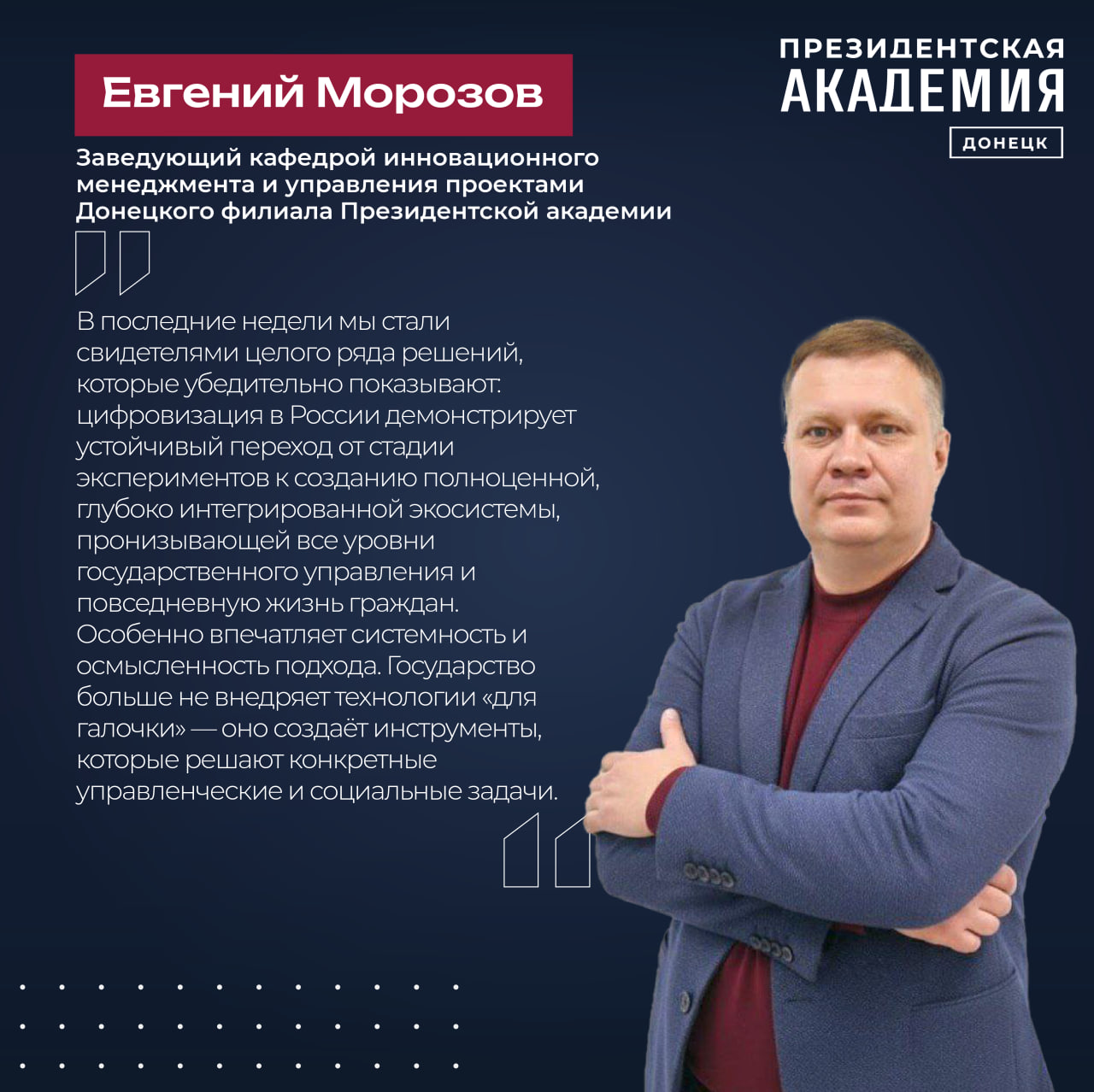 Заведующий кафедрой инновационного менеджмента и управления проектами Донецкого филиала Президентской академии Евгений Морозов отмечает, что «в последние недели мы стали свидетелями целого ряда решений, которые убедительно показывают: цифровизация в России демонстрирует устойчивый переход от стадии экспериментов к созданию полноценной, глубоко интегрированной экосистемы, пронизывающей все уровни государственного управления и повседневную жизнь граждан. Особенно впечатляет системность и осмысленность подхода. Государство больше не внедряет технологии «для галочки» — оно создаёт инструменты, которые решают конкретные управленческие и социальные задачи. Во-первых, последовательная интеграция национального мессенджера Max в контур госуслуг демонстрирует принципиальный переход от ведомственно-ориентированной модели к настоящей клиентоцентричной архитектуре. «Цифровой ID», чат-бот «Госуслуги» и мгновенные уведомления о статусе заявлений формируют единую доверительную среду, реализуя экосистемный подход, при котором государство интегрируется в повседневную коммуникационную среду гражданина. Это классическая реализация принципа «одного окна» — только теперь окно открывается внутри повседневного мессенджера. Во-вторых, проектный подход в рамках инцидента №55 («Очистные сооружения») задаёт новый стандарт государственного управления. Онлайн-камеры, автоматические уведомления при отклонении от «дорожных карт» и еженедельная отчётность главам регионов — это уже не контроль постфактум, а полноценный риск-ориентированный мониторинг в реальном времени. Раньше отклонения обнаруживали через месяцы, теперь их видят и исправляют на старте. Во-третьих, национальная платформа «ГосЛог» — это системное снятие межведомственных и межсекторных барьеров в логистике. Единый цифровой контур, «одно окно», сквозная прослеживаемость грузов и консолидация всех реестров превращают разрозненные процессы в единую, прозрачную и эффективную систему. Бизнес получает скорость, государство — контроль, а экономика — снижение издержек. В-четвёртых, особенно показательно, как цифровизация уверенно входит в самые «человеческие» сферы. Интерактивная карта пробации ФСИН и 165 тысяч детских телемедицинских консультаций в Подмосковье с начала года — это уже не про экономию, а про доступность и снятие психологических барьеров. Человек, которому нужна помощь, больше не должен преодолевать стыд, очередь или расстояние. В итоге перед нами уже не отдельные цифровые проекты, а целостная модель цифрового государственного управления, построенная на трёх ключевых принципах: платформизация, мониторинг в реальном времени и глубокая клиентоцентричность. Для системы подготовки управленческих кадров это означает необходимость пересмотра образовательных стандартов: компетенции в области управления на основе данных, проектного анализа в реальном времени и архитектуры межведомственного взаимодействия должны стать ядром программ, а не факультативным дополнением. Потому что именно такие компетенции будут определять эффективность государственного управления ближайшие десятилетия».